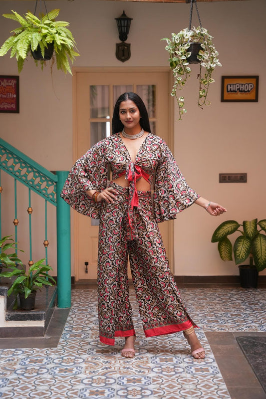 CRIMSON RED-FLOWER GOLD 2-PIECE CORD-SET