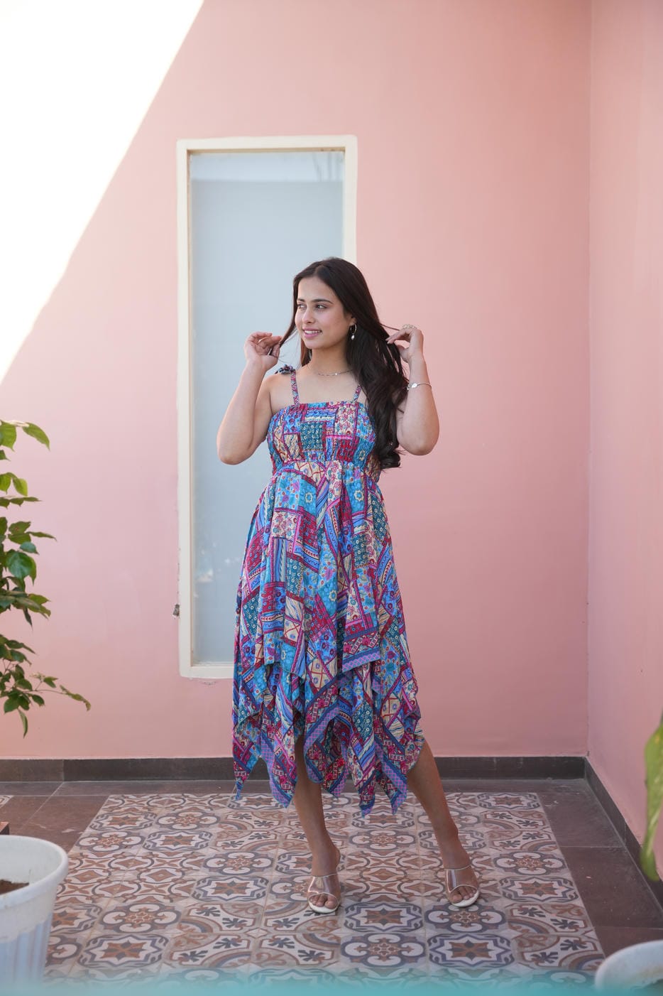 Step into bohemian elegance with the Jonah Gypsy Boho Dress, a captivating fusion of color, comfort, and style. Featuring a mesmerizing turquoise patchwork print, this dress embodies the free-spirited charm of boho fashion.